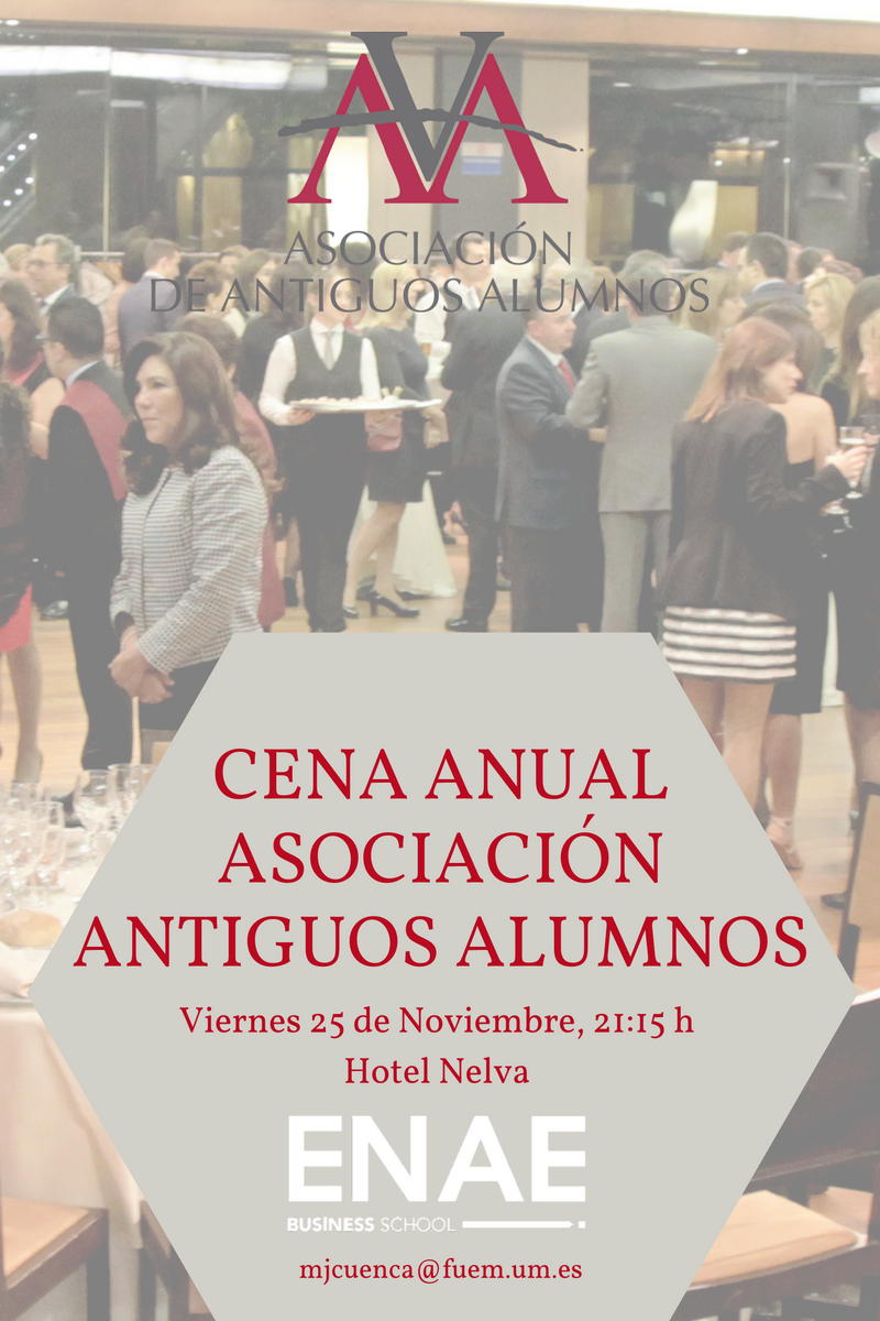 Un año más, celebramos la Cena Anual de la Asociación de Antiguos Alumnos de ENAE Business School. El evento tendrá lugar el próximo viernes 25 de noviembre en el Hotel Nelva.