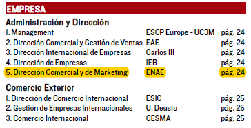 Un año más el Ranking 250 Máster 2016/2017 del prestigioso periódico El Mundo vuelve a destacar nuestros programas entre los mejores de España. En las categorías de Administración y Dirección, así como en el área de Marketing, los dos programas seleccionados en el 5º y 4º puesto respectivamente son los siguientes: