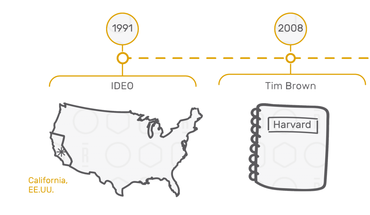 Su cuna fue Standford, pero su periodo de crecimiento se dio unos años después. Te lo explico: Bienvenido a la consultora IDEO. Estamos en el año 2000 y Tim Brown, ingeniero y CEO de la empresa, y diseñador en sus ratos libres, empieza a cultivar la idea. Llegó a convertir unas semillas de ideas en un cultivo internacional.