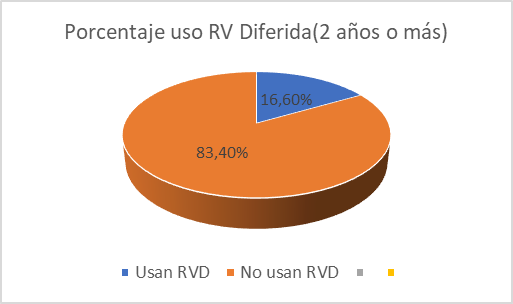 En lo que respecta a la retribución variable diferida, (dos o más años), los resultados muestran una poca implantación de esta modalidad retributiva, sólo el 16% de las empresas cuentan con este sistema, mientras que casi el 84% restante no lo tiene.