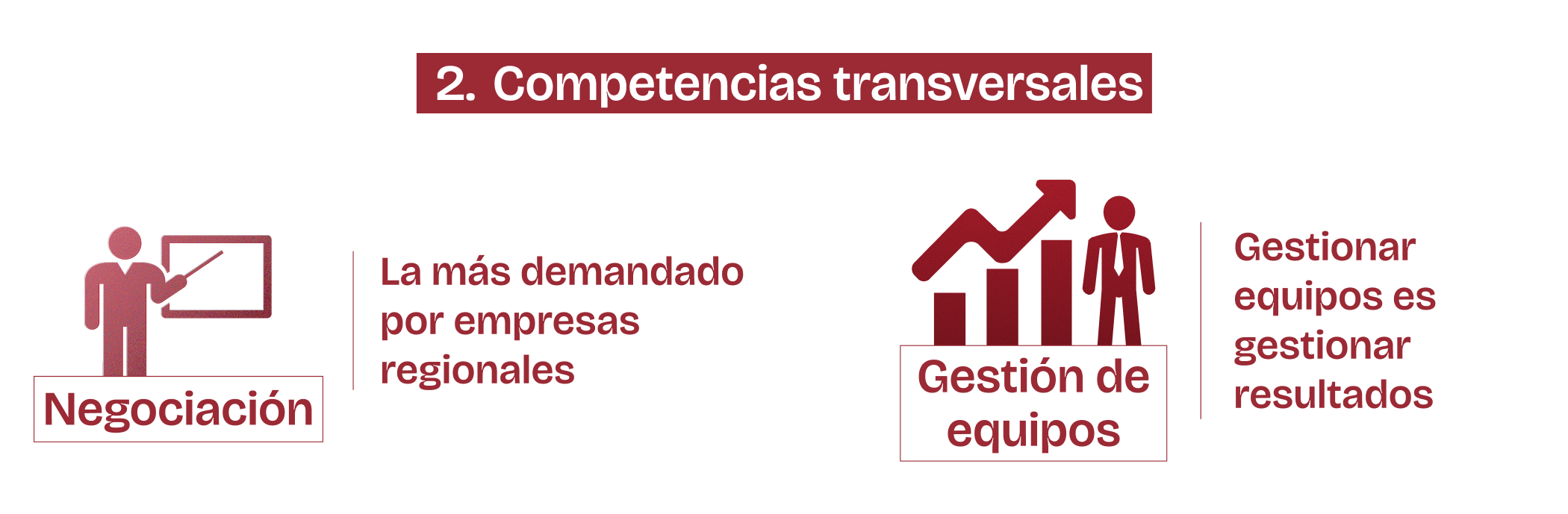 Asimismo, las competencias transversales son fundamentales para garantizar una ejecución y coordinación efectivas. Entre ellas, la capacidad de negociación fue la más demandada por las empresas regionales, ya que permite cerrar acuerdos de alto valor y mantener relaciones estratégicas duraderas. En entornos internacionales, la negociación exige además adaptación cultural, preparación y método; por eso resulta útil trabajar marcos y buenas prácticas vinculadas a la gestión en negocios internacionales.